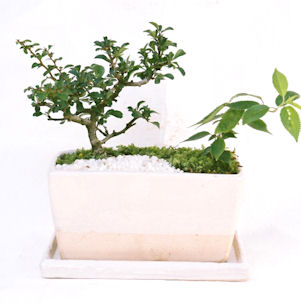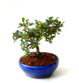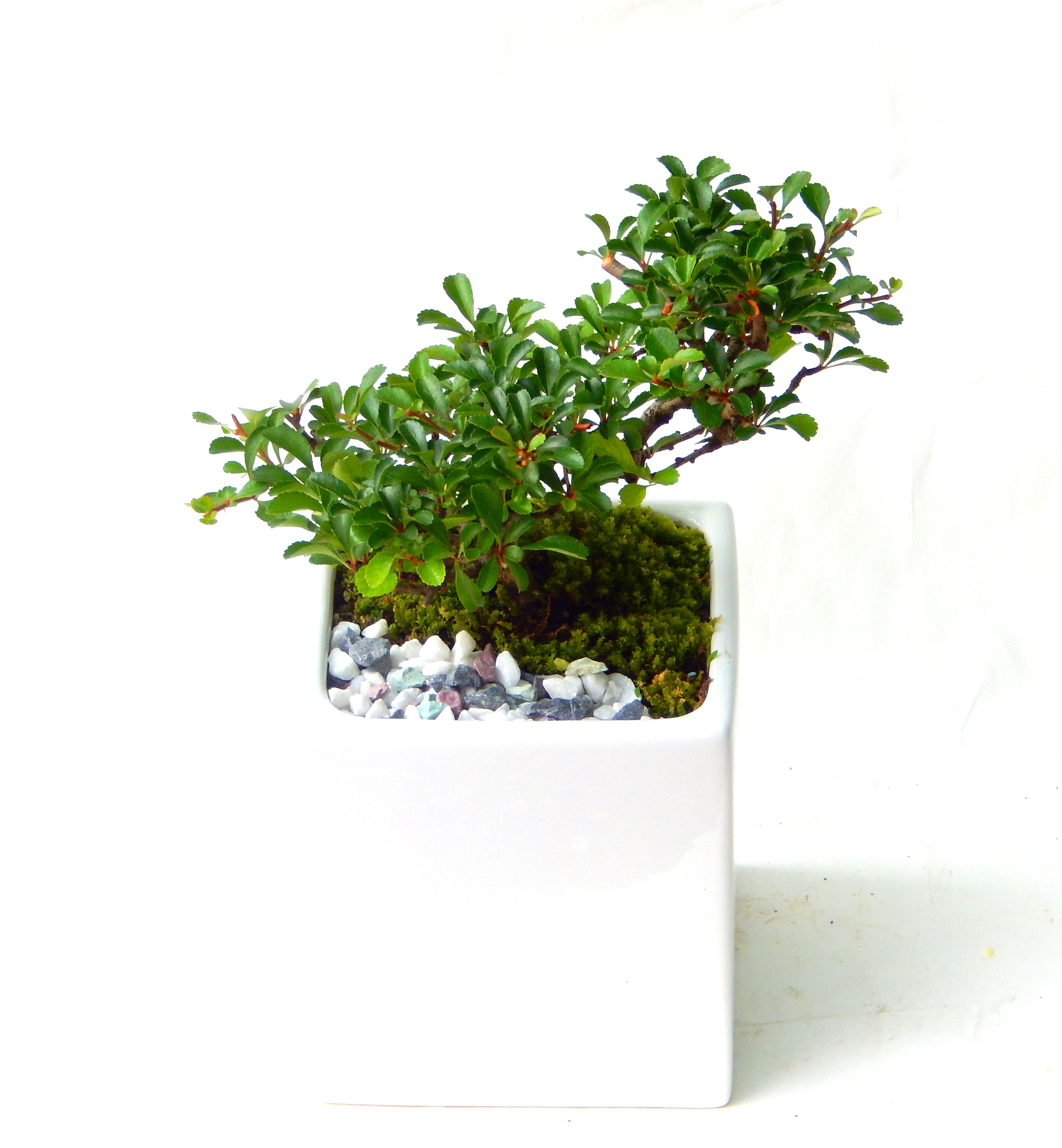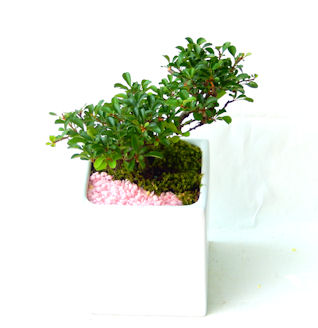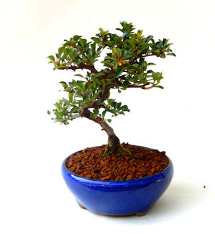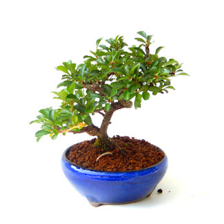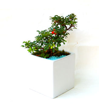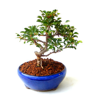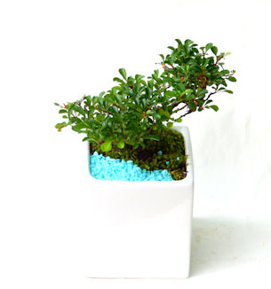 | 幸福を呼ぶ、開運、長寿の超人気商品です。インテリアにこだわる方に喜ばれる大人の盆栽。盆栽が描き出す優雅な鉢物植物、和風、洋風のお部屋にも調和するブルーの器を使用して、モダンな雰囲気を作り出しています。インテリアとしてお楽しみいただけます。 |