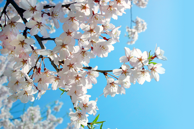 花の時期は3月下旬~5月上旬で、花弁は五枚一重で色は白から薄紅色。花は1cm~2cmと小ぶり。他種と違い花を下に向けて開かせる。