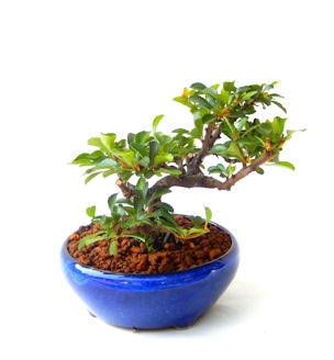 | 幸福を呼ぶ、開運、長寿の超人気商品です。インテリアにこだわる方に喜ばれる大人の盆栽。盆栽が描き出す優雅な鉢物植物、和風、洋風のお部屋にも調和するブルーの器を使用して、モダンな雰囲気を作り出しています。インテリアとしてお楽しみいただけます。 |