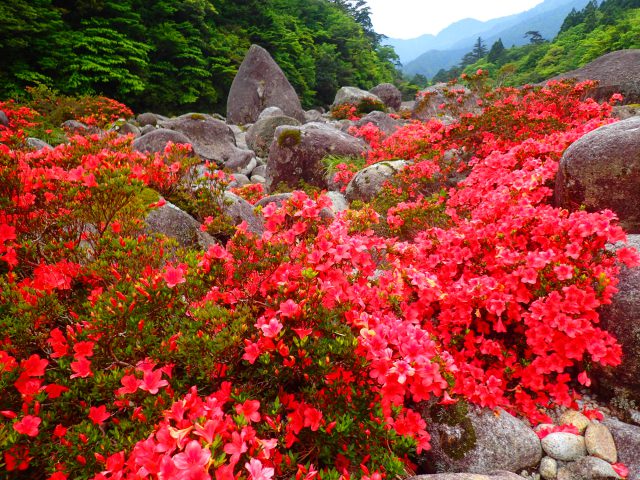 縄文杉ルートの河原ではサツキの花が・・・安房川沿いはサツキが咲き乱れます