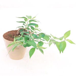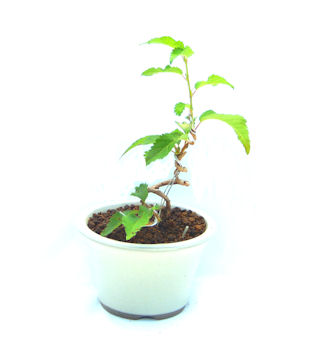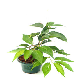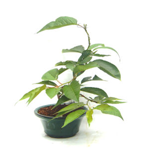 冬は落葉し、春から晩秋まで、四季の風情を感じ取る事が出来る樹木です。一年に2回も、花が咲ます。和風、洋風のお部屋にも調和するカラーの器を使用して、モダンな雰囲気を作り出しています。インテリアとしてお楽しみいただけます。