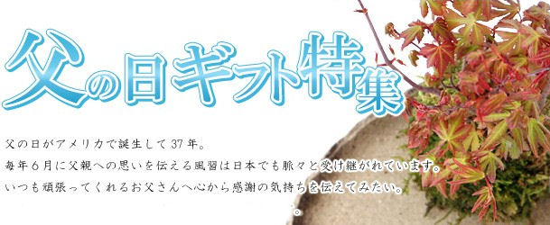 父の日の由来 父の日の始まりは1910年に(明治43年)男女同権の立場から、母の日に対して父にも感謝する日があるべきであると考えた、アメリカのワシントン州に住んでいる、ジョン・ブルース・ドット夫人という方が始めました。小さい頃に母親を亡くし、男手一つで育ててくれた父に感謝しようと催しを開いたのです。その催しが行われた日が、今日の父の日の始まりとされていますが、父の日はなかなか祝日にはならなかったのですが、62年後の1972年にようやくアメリカで祝日に決定されました。 |