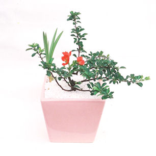 縁起が良いといわれる植物、盆栽にすることで一層の価値ある商品にしたものです