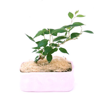 いちょうは、人気商品です。インテリアにこだわる方に喜ばれる大人の盆栽。盆栽が描き出す優雅な鉢物植物、和風、洋風のお部屋にも調和するカラーの器を使用して、モダンな雰囲気を作り出しています。インテリアとしてお楽しみいただけます。